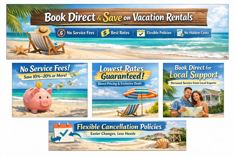 When planning a beach getaway, it’s tempting to book your vacation rental through a large third-party site. While those platforms may seem convenient, they often come with hidden costs that can quietly inflate your total. Booking directly through our A1 Website is one of the easiest ways to save money—and enjoy a better experience overall.